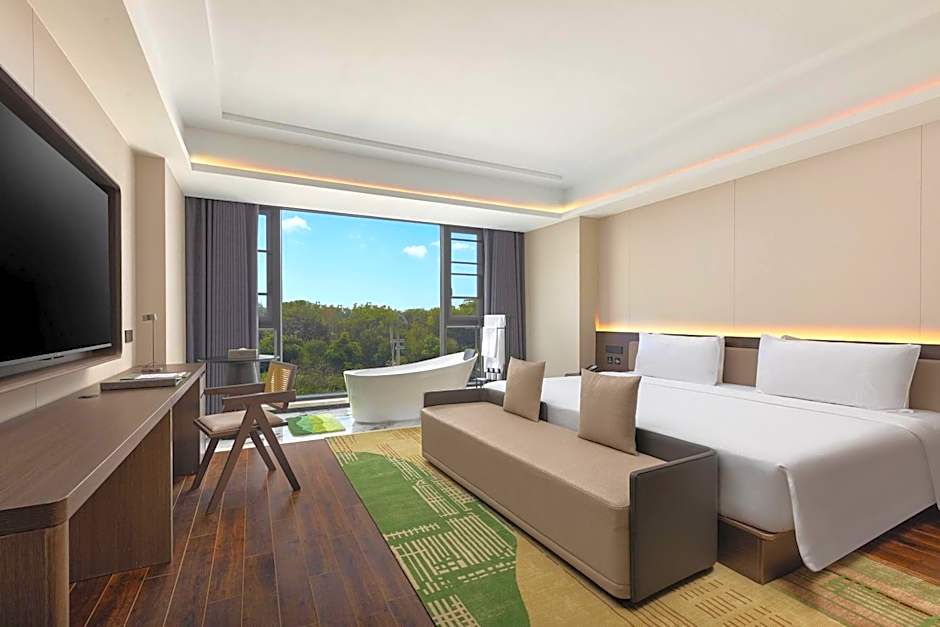 The outdoors offer a seasonal, adults-only pool with an infinity edge and a view, perfect for a quiet dip or sunset moment. On-site dining includes two Modern-ambience options, each serving a mix of cuisines: 申·花园晨光全日制餐厅 (American, Chinese, Local, Asian, International) and 申园·竹韵中餐厅 (Chinese, Seafood, Local, Asian, International). It’s a dining pair that covers every craving, from hearty classics to international flavors.